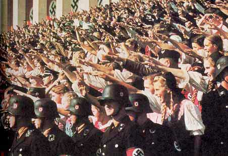 Through the complete manipulation of the flow of information, along with providing just enough economic improvement to lift the people’s spirits; the general populace supported the Nazi regime.  But it was a support indifferent to the details of Nazi governance.  All of the major demonstrations and speeches shown on newsreels were not spontaneous, as claimed, but staged events.  As long as that minimal level of needs was being met, and as long as the German people felt the Nazis were elevating a level of German national pride, the people ignored oppressive measures.  After all, if they were not Jews, Gypsies, homosexuals or political opponents, they believed they would be left alone.  This attitude of indifference is perhaps the scariest aspect of the success of the Nazis in Germany.